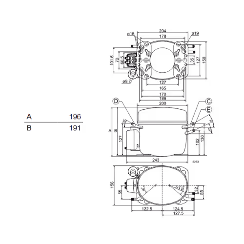 - Verdichtertyp: Hubkolbenverdichter, vollhermetisch